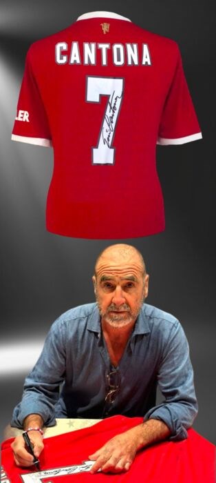 Eric Cantoná, beschouwd als een van de beste voetballers in de geschiedenis, signeerde dit echte Manchester United-shirt voor het seizoen 2022.