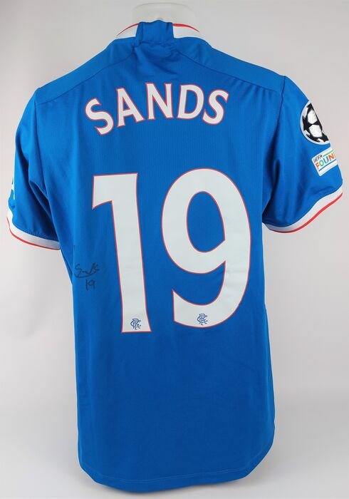 Shirt is including the official Champions League patch and UEFA Foundation patch. James Sands signed the jersey at the frontside and backside as well.