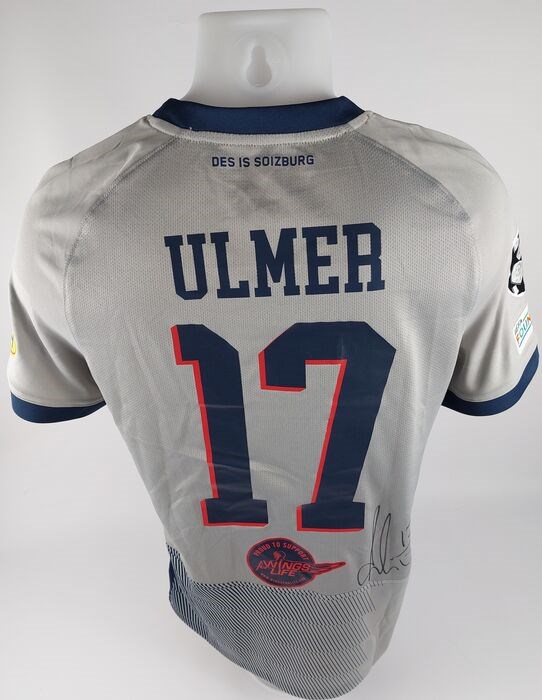 Shirt is including the official Champions League patch and UEFA Foundation patch. Andreas Ulmer signed the jersey at the frontside and backside as well.