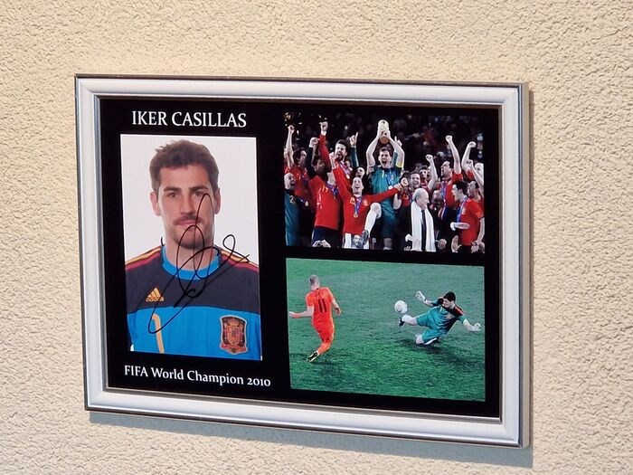 Dit kavel is een 23x32 nieuw in seal budget lijst inclusief een A4 formaat fotocollage gesigneerd door legende Iker Casillas. Dit item bevat een Collectables Unlimited Certificaat van Echtheid (COA)