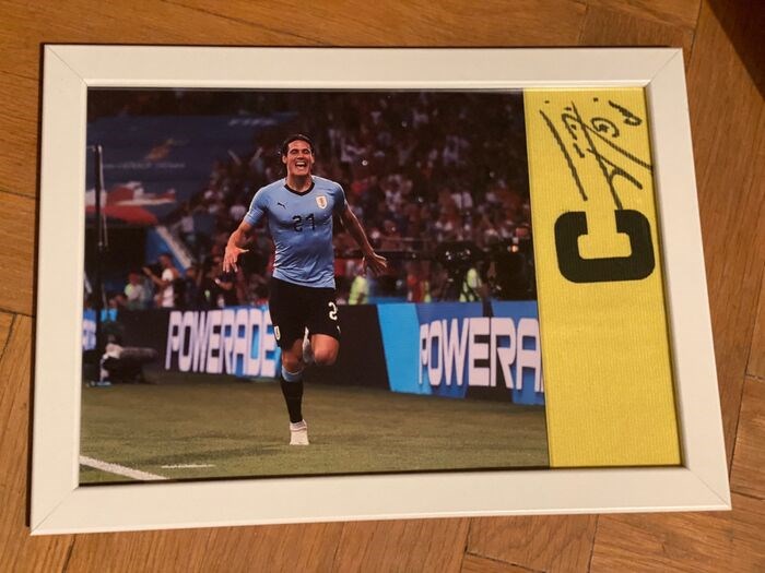 Aanvoerdersband getekend door de spits van Valencia en het nationale team van Uruguay, Edison Cavani. Handtekening persoonlijk verkregen na een training. Het item wordt op een gecertificeerde manier en met een trackingnummer verzonden. Er wordt gebruik gemaakt van een goede bescherming zodat het kavel niet wordt beschadigd.