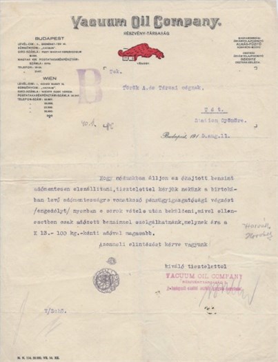 Oude brief Vacuum Oil Company, Budapest, 1915
