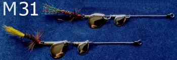 2 stuks Tandem spinnertjes met een Goudkleurig Colorado spinnerblad van 12 en 16 mm