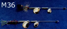 2 stuks Tandem spinnertjes met een Goudkleurig Colorado spinnerblad van 12 en 16 mm