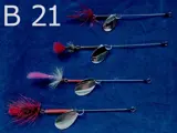 Diverse sets van 4 stuks Ultra Light Baars - Snoekspinners met vlieg voor de 3 - 5 grams spinhengel € 12,00 per set.
