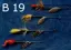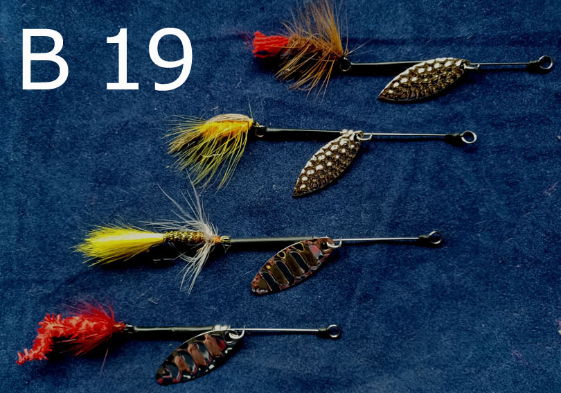 Diverse sets van elk 4 stuks Baars Snoekspinners met vlieg € 12,00 per set
