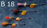 Diverse sets van elk 4 stuks Baars Snoekspinners met vlieg € 12,00 per set