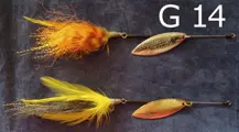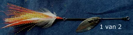 Set G 9 & set G14 van elk 2 Baars-Snoekspinners met streamer € 8,90 per set