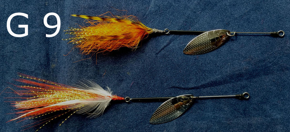 Set G 9 & set G14 van elk 2 Baars-Snoekspinners met streamer € 8,90 per set