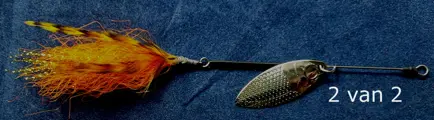 Set G 9 & set G14 van elk 2 Baars-Snoekspinners met streamer € 8,90 per set