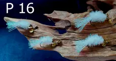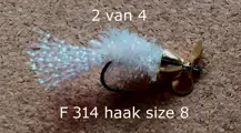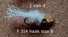 Set P 16 van 4 Forel-Ruisvoorn-Baars Propellervliegen enz. voor vlieghengel en Ultra Light spinhengel € 9,00 per setje