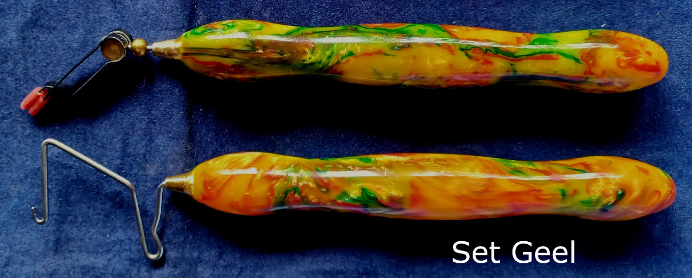 Een ideale set van 2 stuks met extra dikkere ergonomische handgrepen voor een comfortabele grip als men last heeft met het beethouden en gebruiken van de dunnere bindgereedschappen bij het vlieg/streamers binden