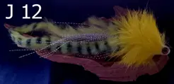 De enkele en dubbele Magnum (Tiger Barred) zonkerstaart zijn gebonden op een 6/0 haak, met o.a. Magnum Tiger Barred zonker strip, Hends zonker, Magnum zonker strip, Flashabou, 3D ogen en Epoxymiddel .