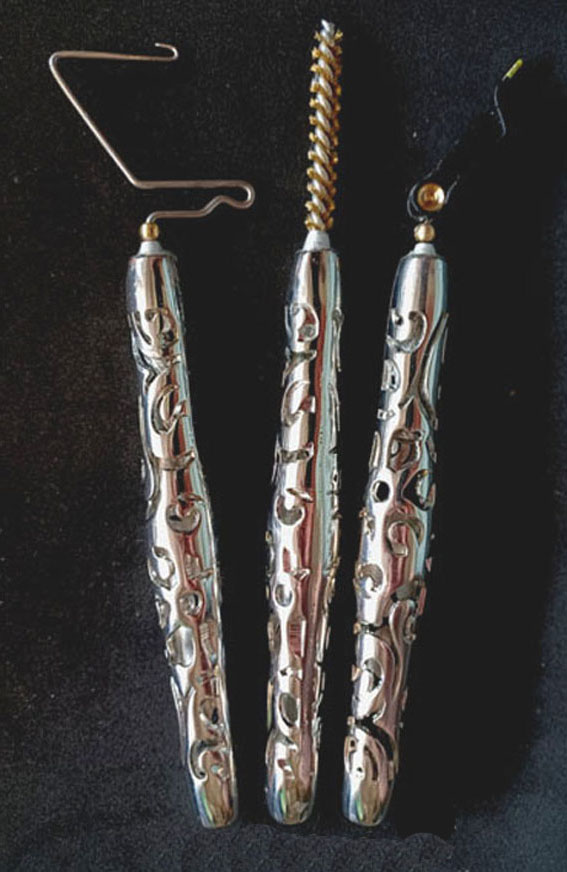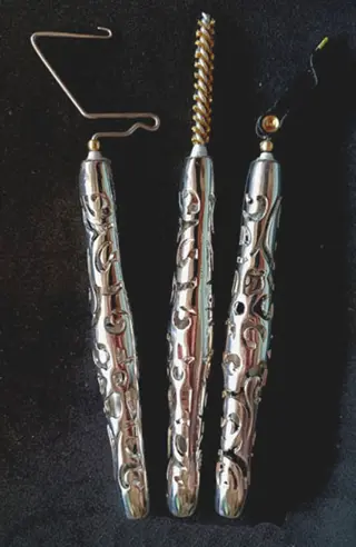 Graag een net bod gevraagd voor deze unieke - exclusieve - ergonomisch zilverkleurige set vliegbind gereedschap.
