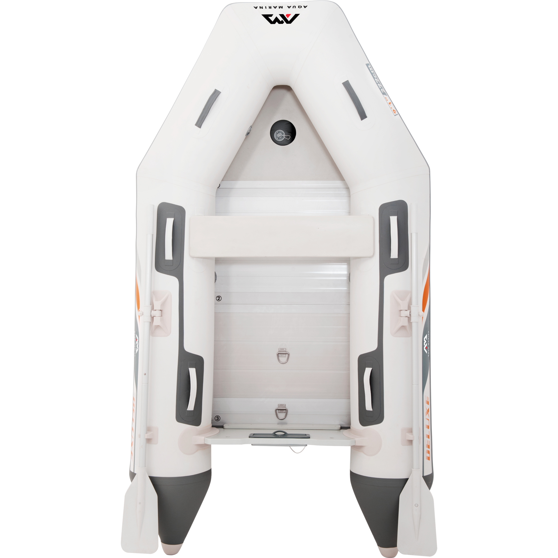 De Aqua Marina BT-06330AL is een hoogwaardige opblaasbare rubberboot die uitblinkt in stabiliteit, draagvermogen en gebruiksgemak. Met een lengte van 330 cm en een breedte van 153 cm biedt deze boot comfortabel plaats aan vijf personen, met een maximaal draagvermogen van 480 kg. Dankzij het lichte gewicht van slechts 43 kg en de meegeleverde draagtas is de BT-06330AL eenvoudig te vervoeren en op te bergen.