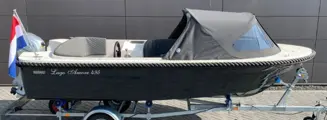 Nog 1 op voorraad: zwarte romp met witte kuip met rondzit. Zwarte kabelaring, Antraciet cabriokap, Diamonds Gewatteerde carbon kussenset met zonnedek, HPL teak, 10 pk Honda, Chrome schakelkast, 12 volt en USB aansluiting, Navigatieverlichting, Zwemtrap. 16.427,-.
