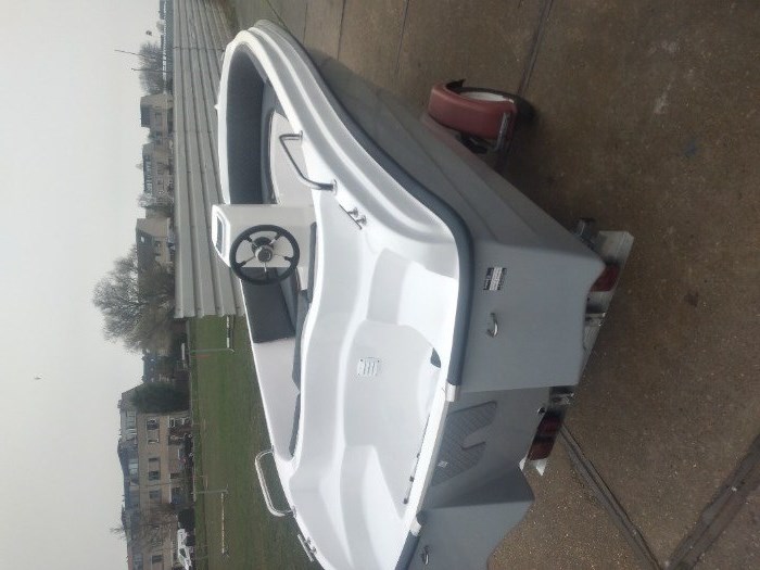Nieuwe witte en een grijze consoleboot sportief sloep model 5.50m lang.