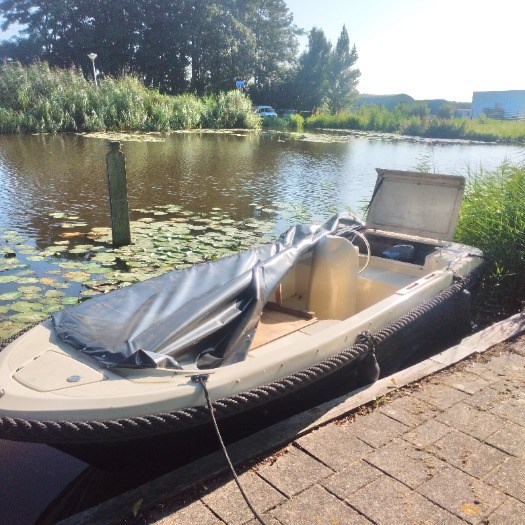 Sloep ligt in het water u kunt direkt varen.