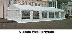 Onze Plus PVC partytenten beschikken allemaal over een waterdicht PVC zeil en worden geleverd met een brandvertragend certificaat!