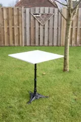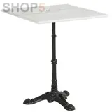 Vierkante bistrotafel met gietijzer onderstel en marmer blad. Het tafelblad is 60x60cm en 73cm hoog.