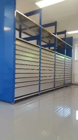 Industriele opslag, magazijninrichting met Hagisto voor rekken en stellingen, ladesystemen, onderdeelsystemen,