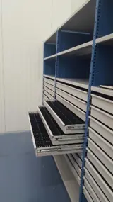 Ladestelling Hagisto voor meer capaciteit en meer opslaglocaties. Uittrekbare stalen lade in stellingen en magazijnrekken.