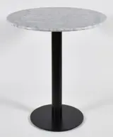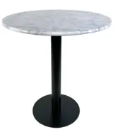 Restaurant tafel met een 70 cm rond marmer tafelblad en een metaal onderstel. De tafel is 75 cm hoog. Het onderstel heeft een ronde voet met een diameter van 40 cm. Het tafelblad wordt aan het onderstel bevestigd d.m.v. een houten montageplaat. Dit is al door ons voor gemonteerd. Het tafelblad dient alleen nog aan het onderstel vastgemaakt te worden met de meegeleverde schroeven.