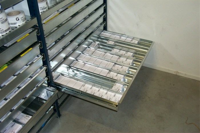 100% uittrekbare magazijnlades voor ruimtebesparende opslag voor onderdelen