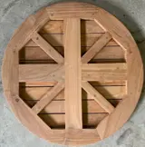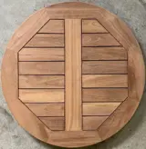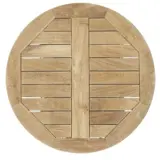 Tafelblad teakhout rond 50 cm. Dit tafelblad is 3 cm dik en geschikt voor buiten gebruik. Teakhouten terras tafelbladen hebben een mooie authentieke uitstraling en zijn vervaardigd van onbehandeld teakhout. Doordat teakhout een natuurproduct is hebben alle tafelbladen een eigen structuur. Dit teakhouten tafelblad is zeer geschikt voor op uw terras of voor op een balkon. Het tafelblad kan gecombineerd worden met verschillende tafelonderstellen waardoor het vele mogelijkheden biedt om de juiste uitstraling te creëren. Naast het tafelblad rond 50 cm hebben wij ook teakhouten tafelbladen met een diameter van 60 cm, 70 cm en vierkant 70 x 70 cm.