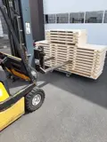 Met de heftrucklepels kan je tussen de vloerdelen in steken zodat je meteen de juiste aantallen van de stapel kunt pakken.