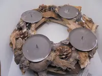 KRANS MET 4 KAARSENHOUDERS DIA 30 CM NIEUW Mooie krans van hout met 4 kaarsenhouders voor stompkaarsen tot max 7 cm. Zie foto. Materiaal: hout/ metaal Formaat: ± dia 30 hoog 9 cm. Als u tot koop over wil gaan, reageer op deze advertentie en wij sturen u alle benodigde informatie Verzendkosten: Pakket Nederland € 7,00 of Pick-up € 5,45 België € 12,10 of Pick-up Vinted go € 4,90 Zie ook onze andere advertenties! Gewicht: ± variabel 900/ 950 gram. Normale prijs € 10,75 Prijs € 6,95. All-Things